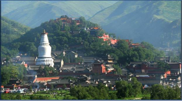 Tayuan Temple (塔院寺) with the 56.4-meter height Great White Stupa, and Pusading Temple (菩薩顶) as the most complete Tibetan Buddhist monastery in Wu-tai.