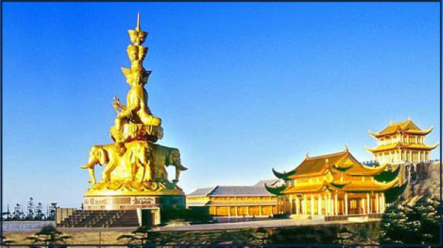 The most famous attractions are: (1) Golden Summit (金頂, 3077m) four Er-mei wonders - sunrise, clouds, Buddha light, and holy lantern, (2) Bao-guo Temple (報國寺),